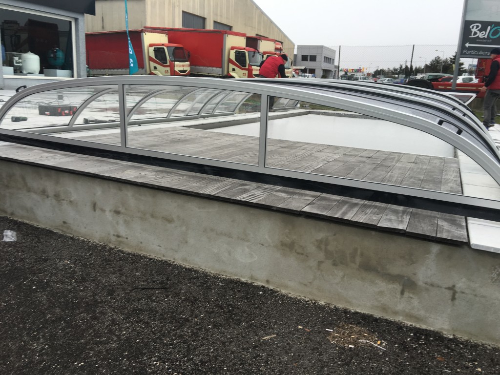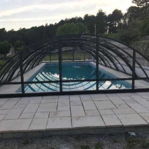 ABRI DE PISCINE BAS TBE EXPO – Modèle télescopique avec guidage au sol